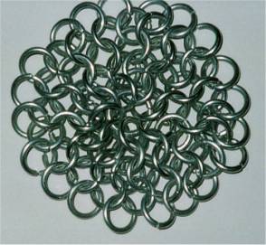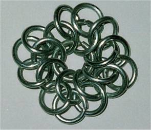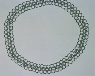 2ª hilera: se enlazan al anillo central ocho anillos y se colocan todos paralelos.