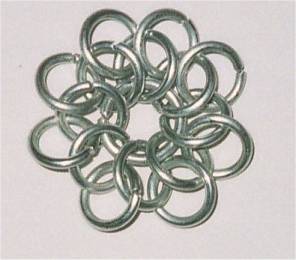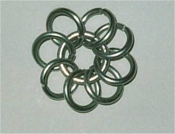 1ª hilera: un anillo central, más grande que los que vamos a usar, yo utilizo uno de 2mm a DI de 10. Esta será nuestra primera hilera.